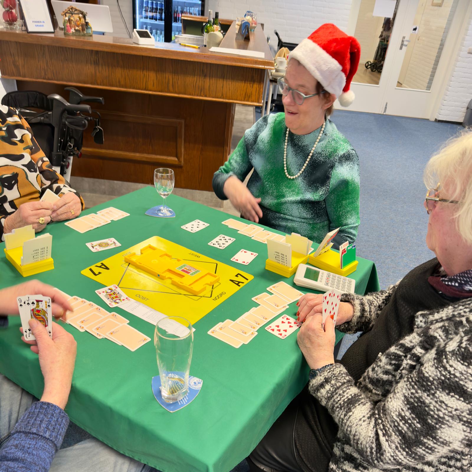 In de week voor kerstmis werd op onze woensdag- en vrijdagzittingen kerstmis gevierd. Eerst werd er een paar uurtjes gebridged, waarna kerstverhalen verteld werden, worstenbroodjes geserveerd, en werd er gezellig “gekeuveld”. Op vrijdag klonken spontaan kerstliederen die de ruimte vulden met kerstsfeer.